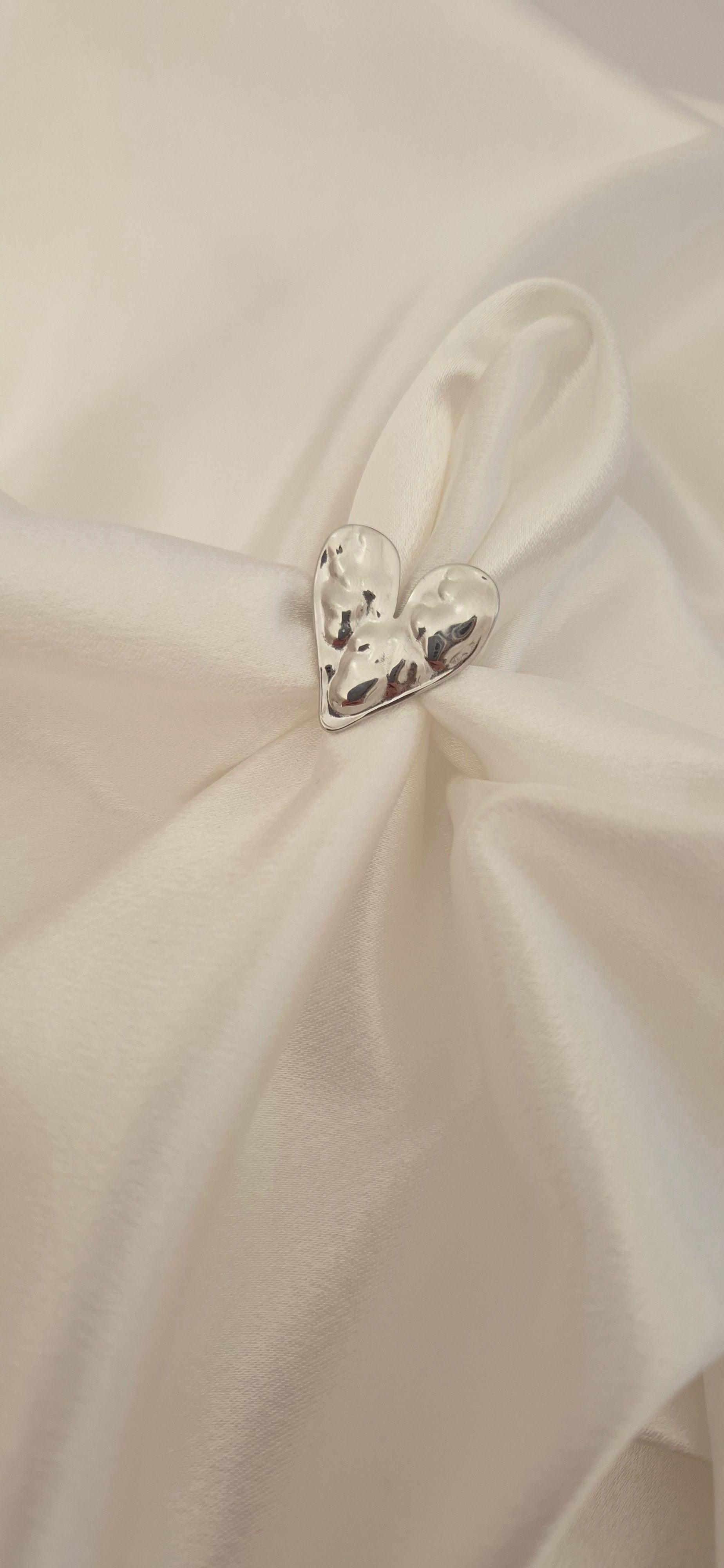 Il design è audace e contemporaneo, con una grande forma a cuore che copre una parte significativa del dorso del dito.
