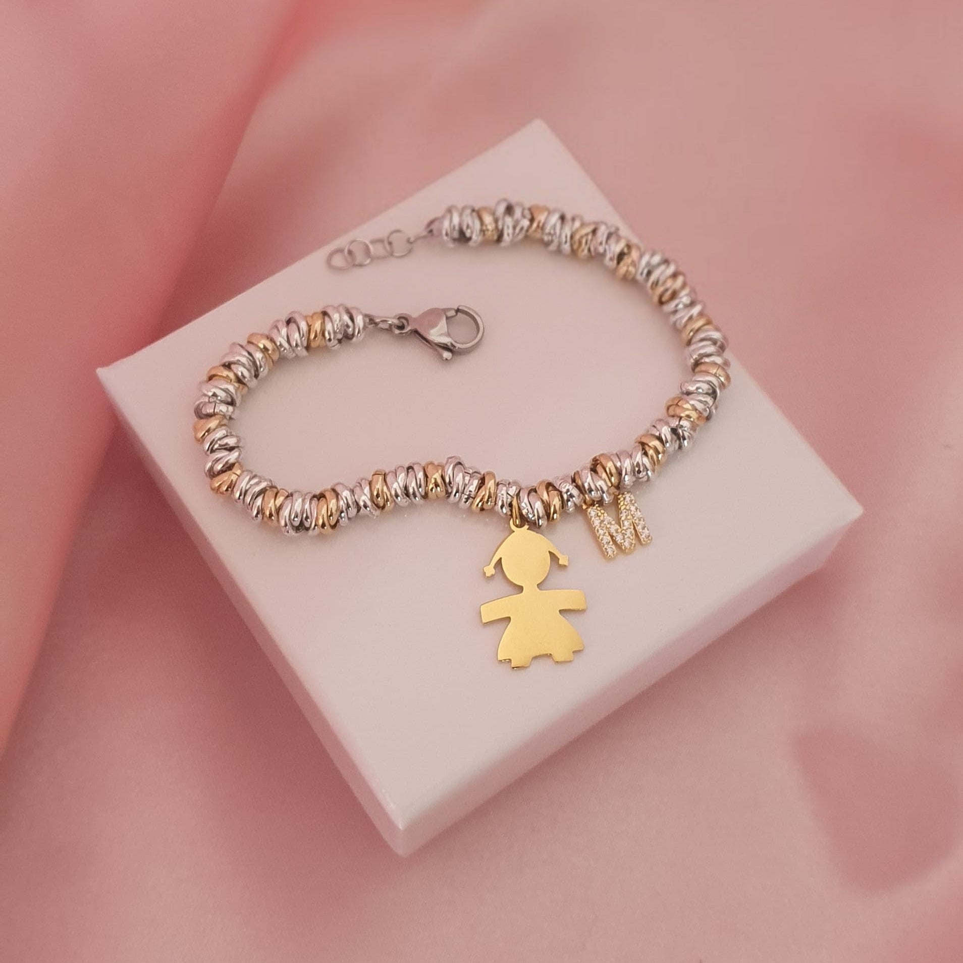 Il bracciale è realizzato con rondelline e ciondoli in acciaio inossidabile.