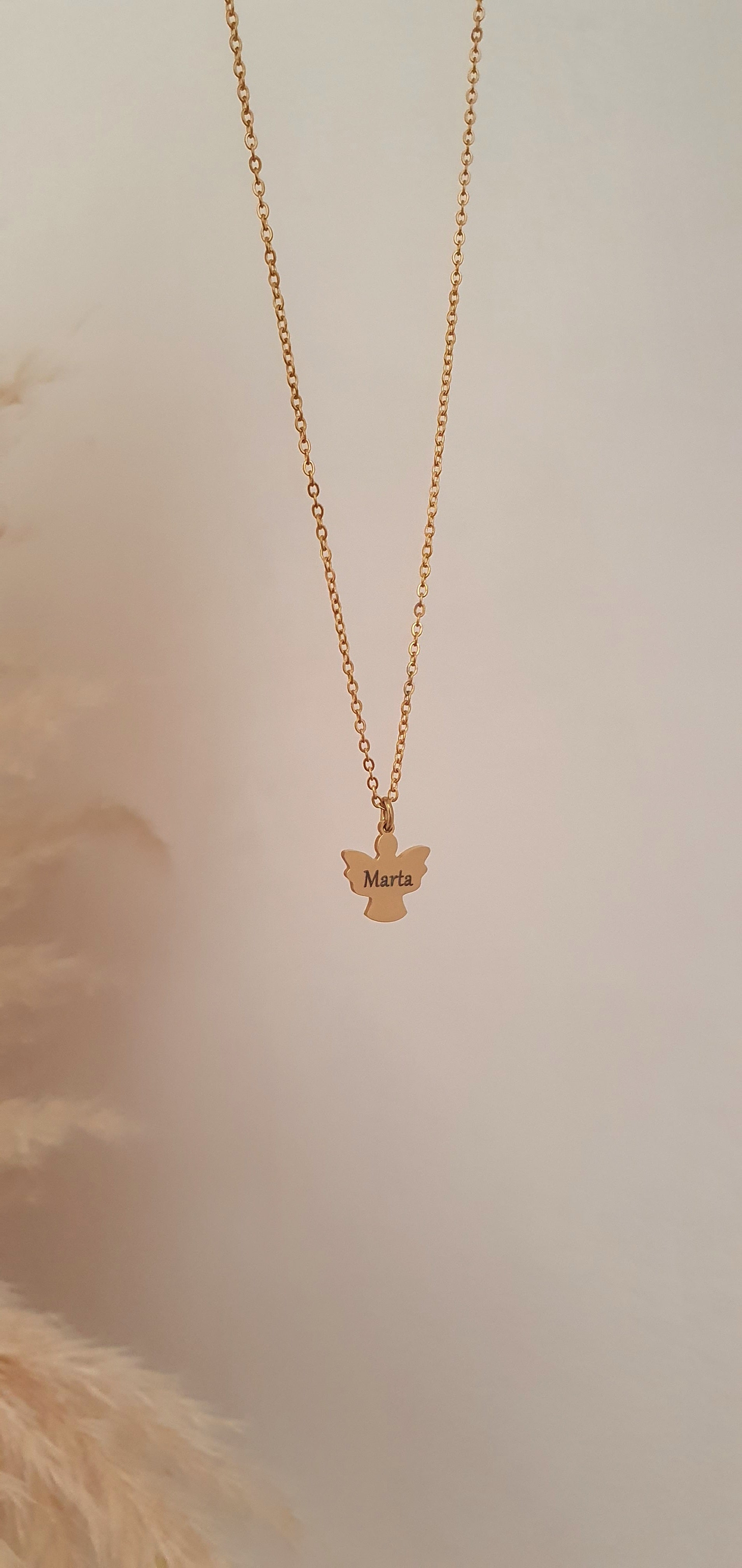 La caratteristica principale di questa collana risiede nel nome che puoi scegliere di incidere sul ciondolo a forma di angelo.