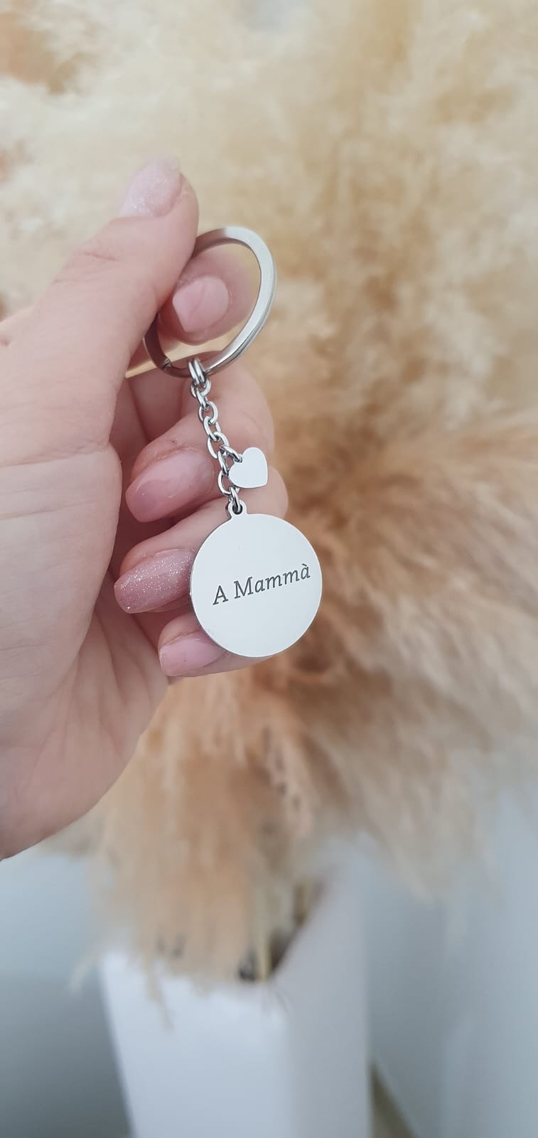 Un pratico ed elegante portachiavi su cui fare incidere una dedica o una frase a te cara, con un massimo di cinque parole.
