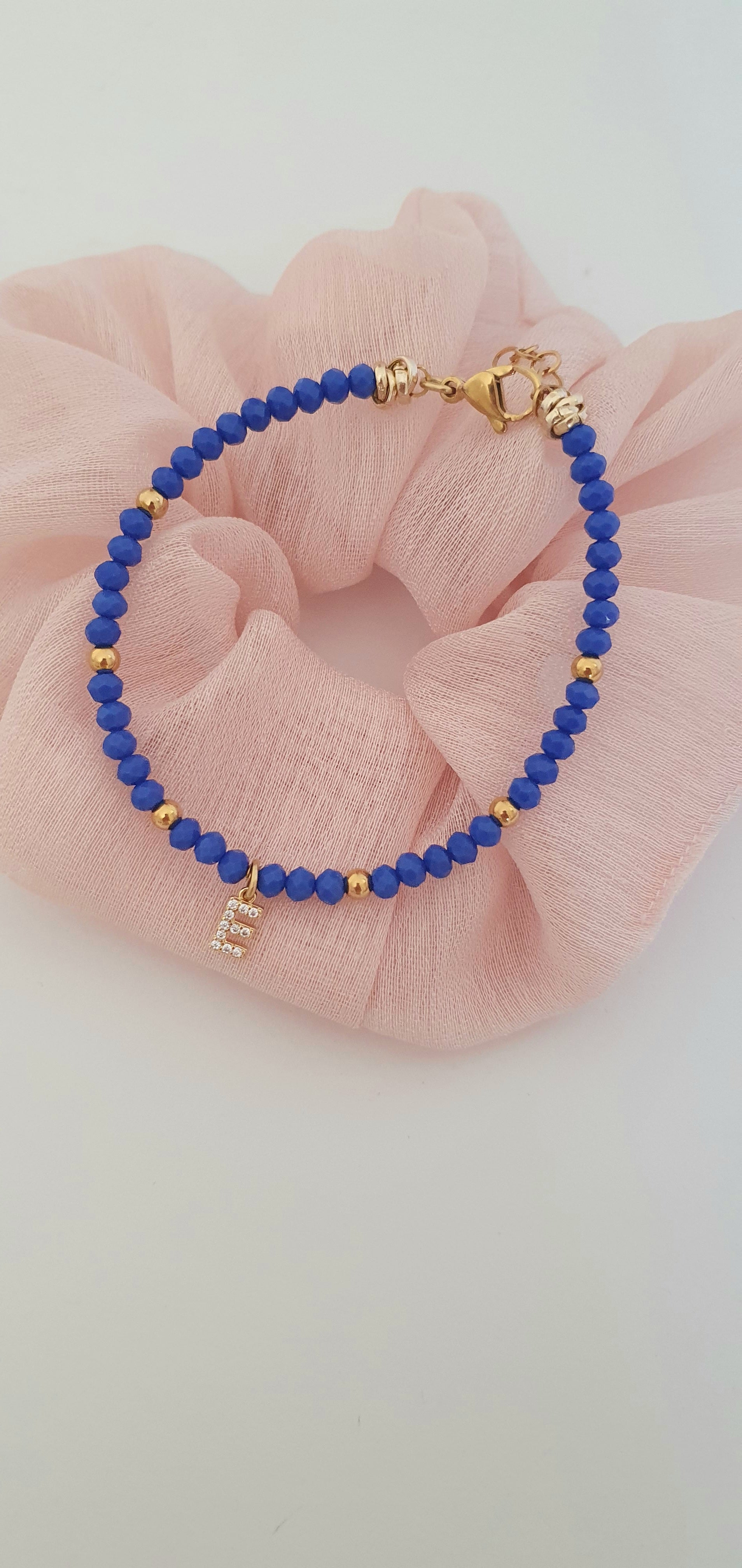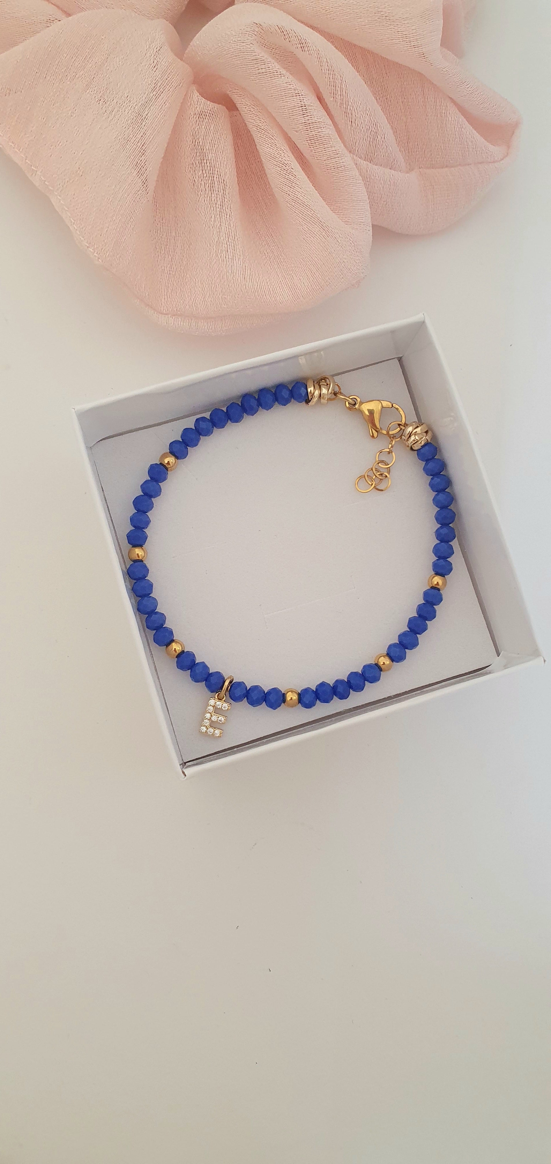 Bracciale delicato con cristallini blu royal ,intervallati da piccole perline in acciaio inossidabile dorato.